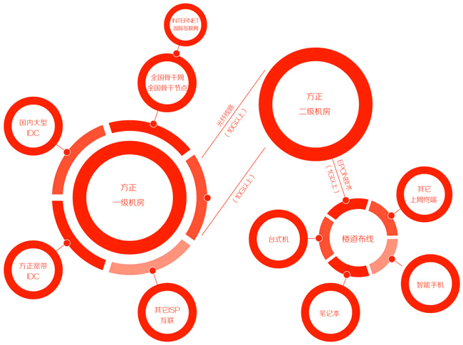 方正IT具有豐富的互聯(lián)網(wǎng)出口,利用ISP運營的靈活性,有效解決了當(dāng)前國內(nèi)互聯(lián)網(wǎng)南北互通不暢的問題,更好地提高用戶訪問速度,特別是獨享接入、多種點對點傳輸服務(wù),以及獨有的國際帶寬、備份鏈路,可以滿足各類企業(yè)用戶、商業(yè)集團(tuán)用戶、酒店、學(xué)校等機(jī)構(gòu)的網(wǎng)絡(luò)需求,實現(xiàn)真正意義的全互聯(lián)網(wǎng)的高速訪問。