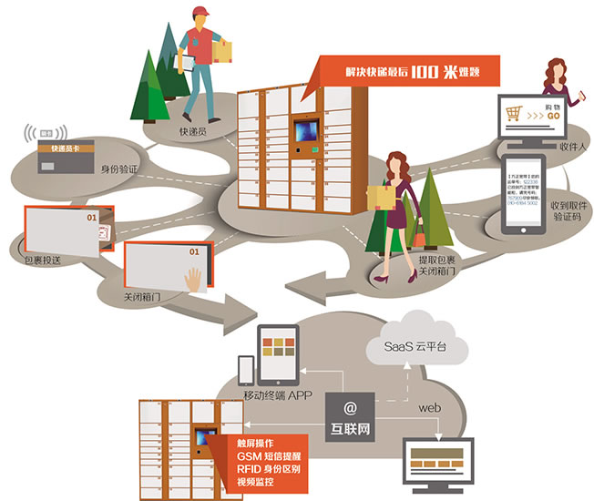 方正智能柜是一個快遞包裹的代收系統(tǒng),解決快遞最后“100”米難題,當(dāng)收件人不方便收取包裹時,快遞員可將包裹投入方正智能柜中,投遞成功后系統(tǒng)會自動給收件人發(fā)送帶有驗(yàn)證碼及二維碼的短信,收件人可憑驗(yàn)證碼或二維碼24小時隨時取件。方正智能柜的功能既不限于快遞終端,也不限于是網(wǎng)絡(luò)熱點(diǎn),它也可以作為社區(qū)便民終端(金融、繳費(fèi)、洗衣等生活服務(wù)功能),它將來是實(shí)現(xiàn)智慧社區(qū)的一個入口,是方正科技為實(shí)現(xiàn)智慧社區(qū)搭建的一個開放性平臺,是實(shí)現(xiàn)商家到客戶的有效橋梁!